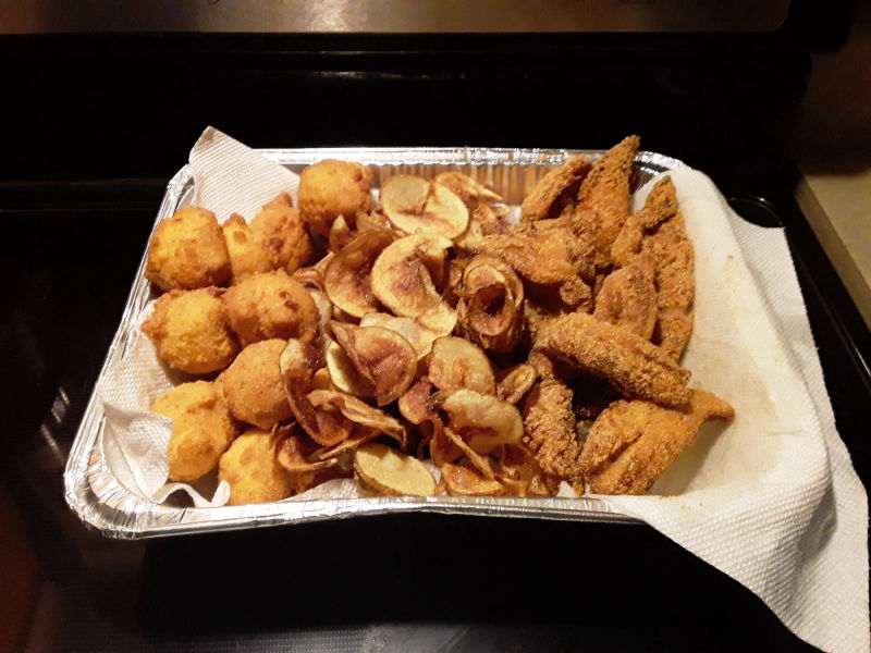 For a simple classic everyone loves, coat your fish in your favorite cornmeal + spices: lemon pepper, garlic, some salt (or not!) and fry in oil of your choice. You should have this at least once per week!